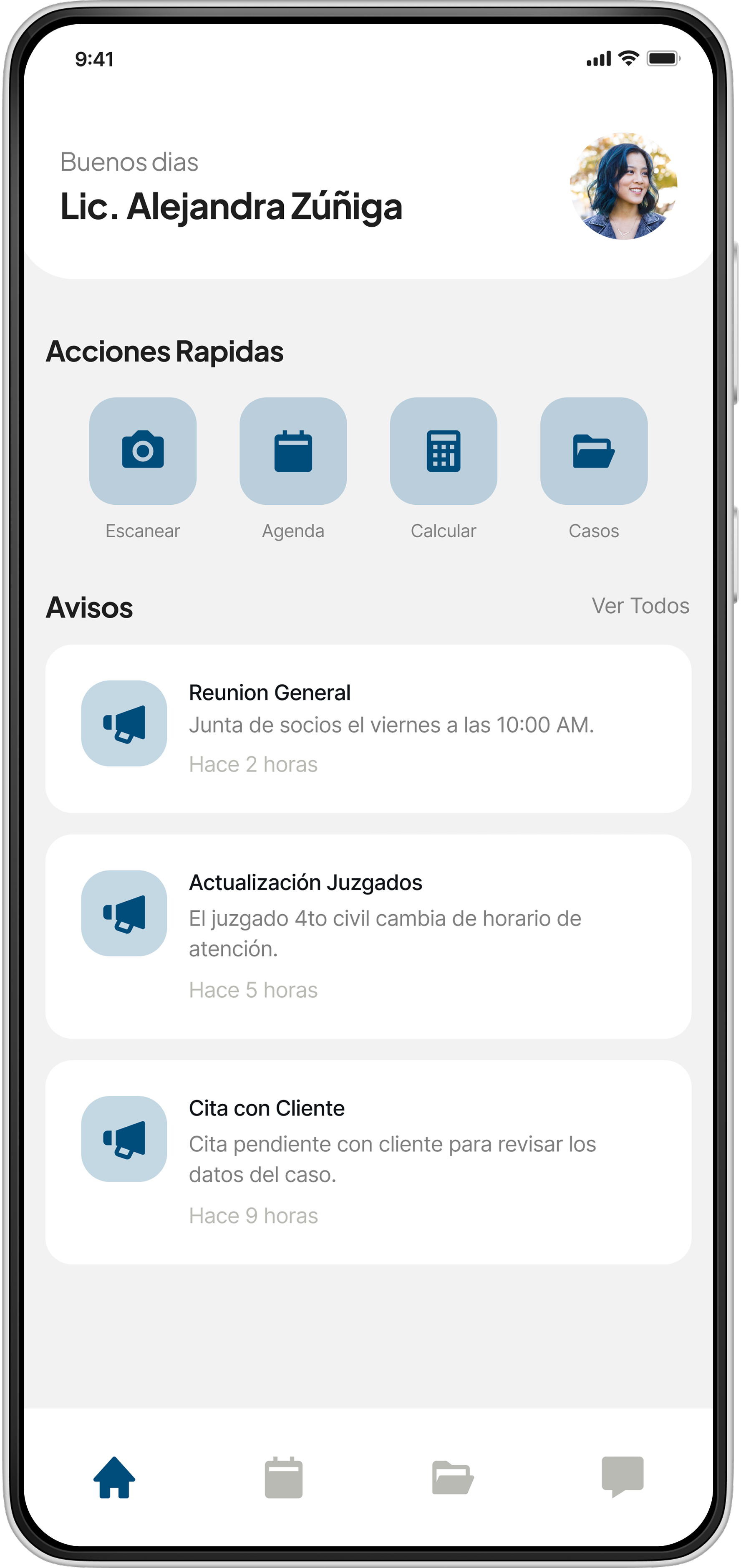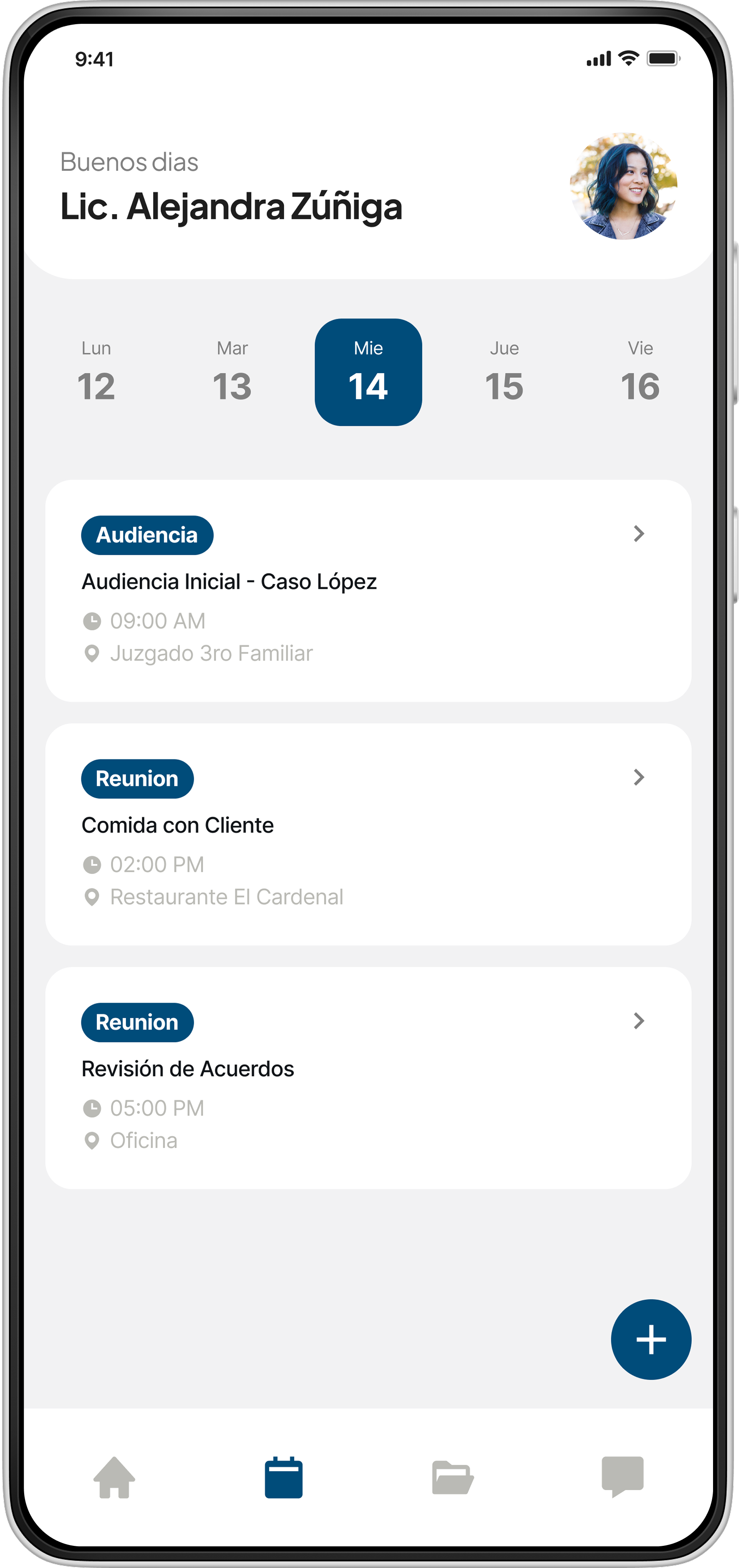 Agenda sincronizada con clientes y juzgados en tiempo real